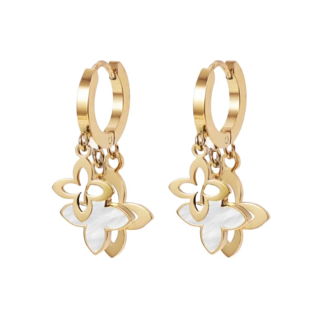 Stainless steel earrings charming star flower gold white