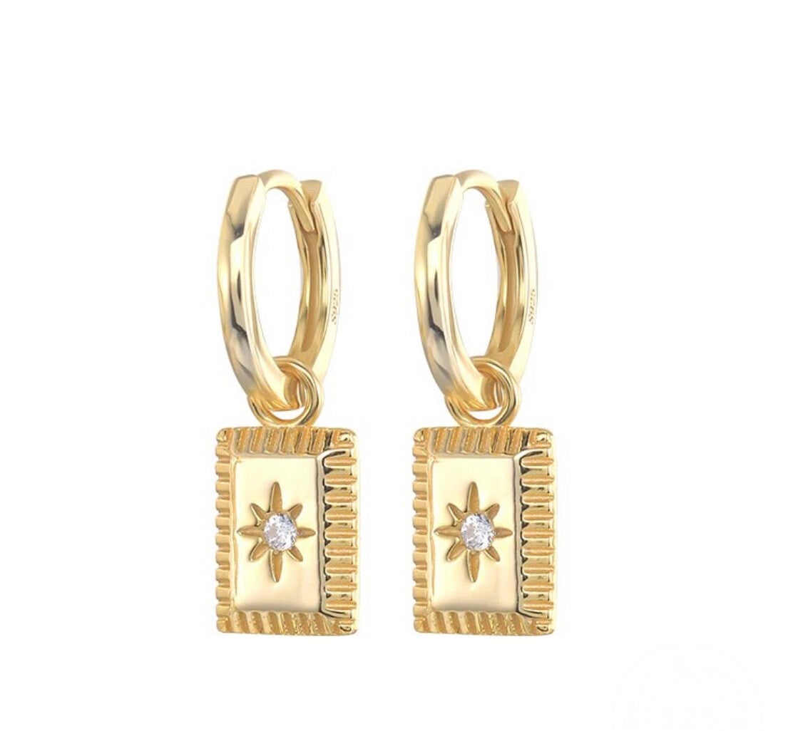 - Golden stainless steel polestar charm earrings