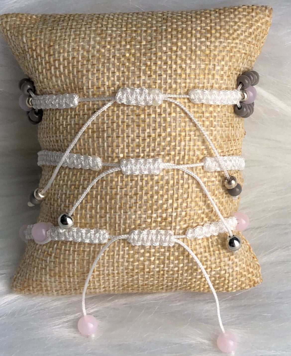 Materiaal: Polypropylene koord - acryl kralen - glaskralen - natuursteen kralen - zinklegering
