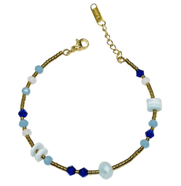 Beaded bracelet multicolor gold - blue - white