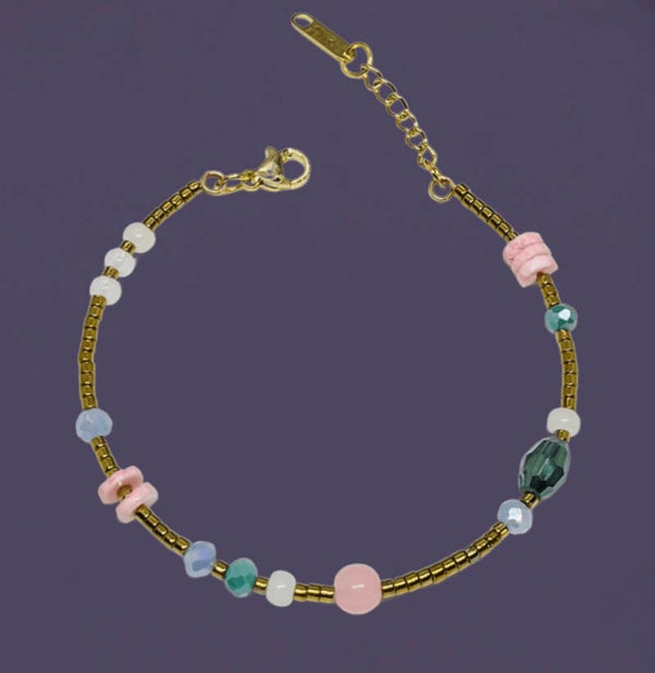 Beaded bracelet bangle multicolor pink blue