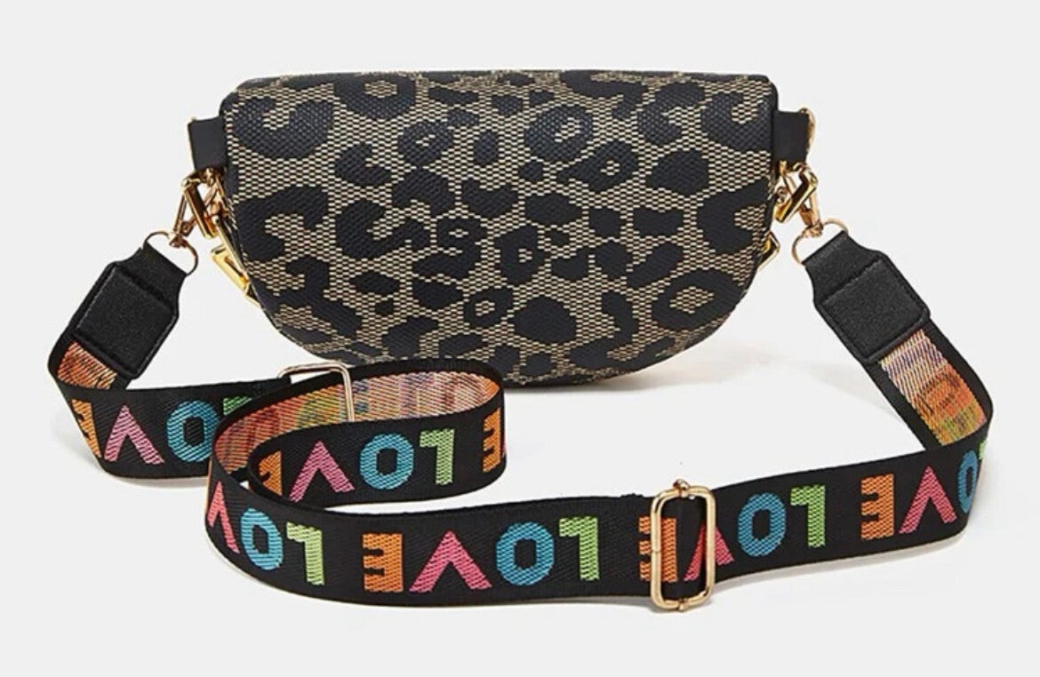 Cross body bag leopard zwart bruin met goudkleurige ketting
